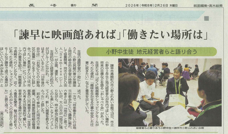 中学生と「おしゃべり会」長崎新聞に掲載されました